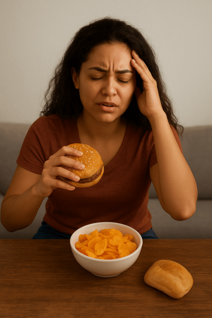 - Stress hormones influence cravings for processed, high-fat, or sugary foods.